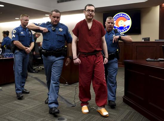 当地时间2015年8月26日,美国科罗拉多州,制造了震惊全美的科罗拉多州影院枪击案的枪手詹姆斯-霍尔姆斯(James Holmes),被正式判处终身监禁、不得假释,此外还有3318年刑期。这一发生在3年前、造成12死70伤的大屠杀有望就此结束诉讼程序。科州阿拉珀霍县地方法院法官萨莫尔(Carlos A. Samour)26日当庭宣读了对27岁的前神经科学研究生霍尔姆斯的判决,称被告将“不会再踏入自由的社会”。文字来源:中国新闻网